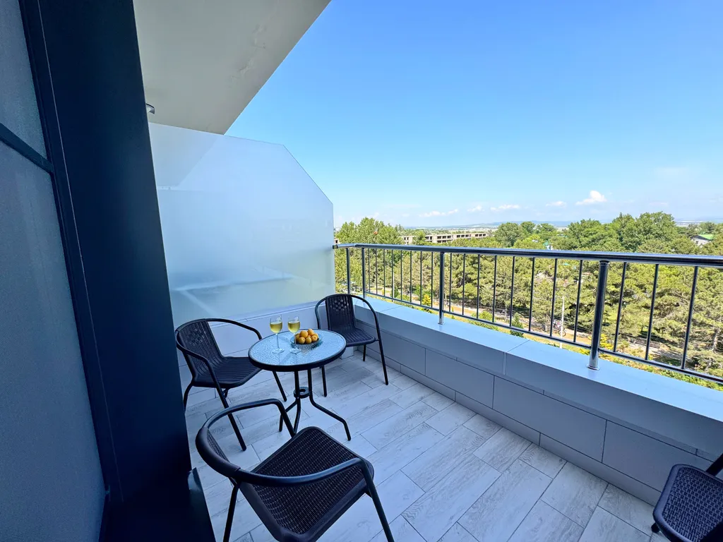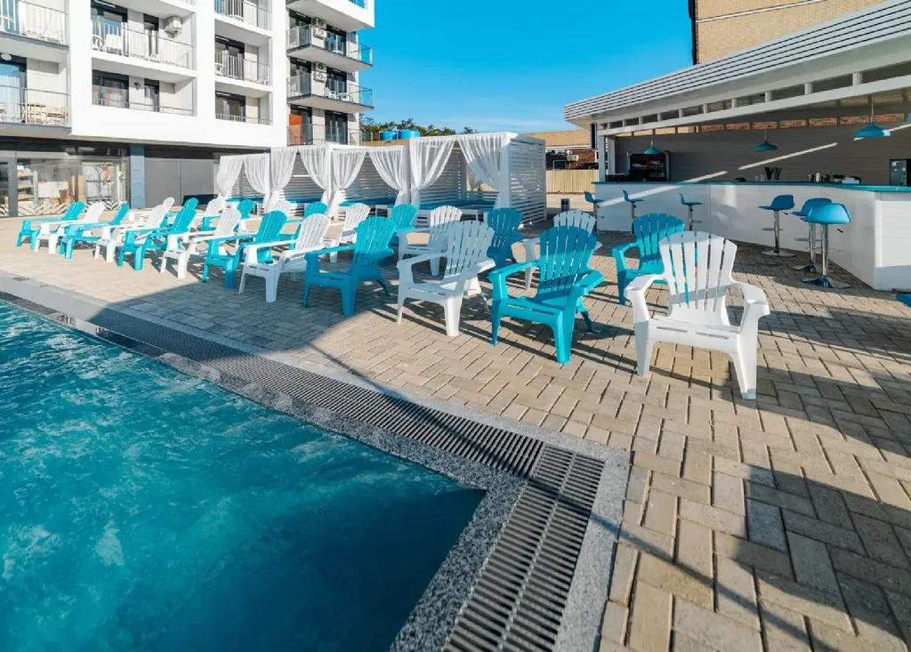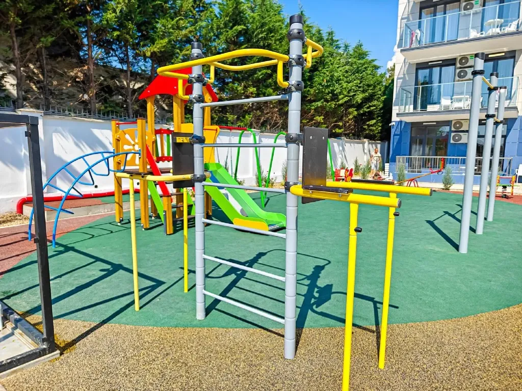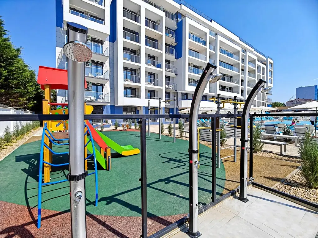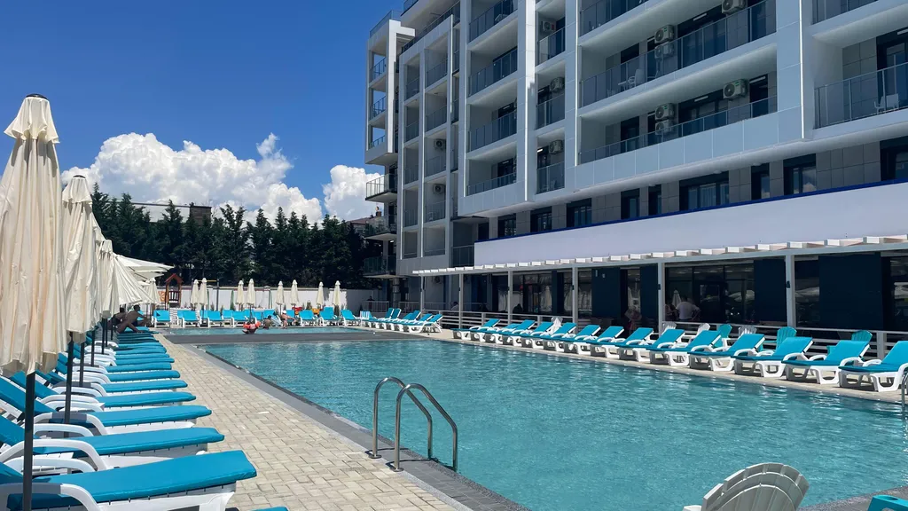 Комплекс расположен на первой линии Пионерского проспекта, в 100 метрах от моря. Рядом находятся кафе, рестораны, магазины, аптеки, остановки общественного транспорта.