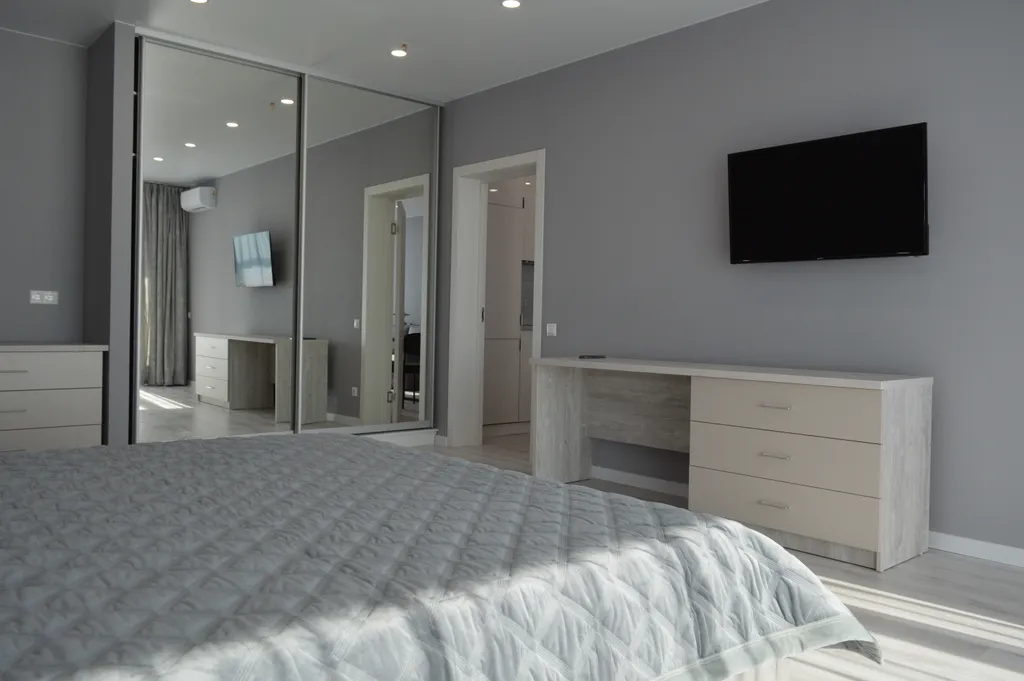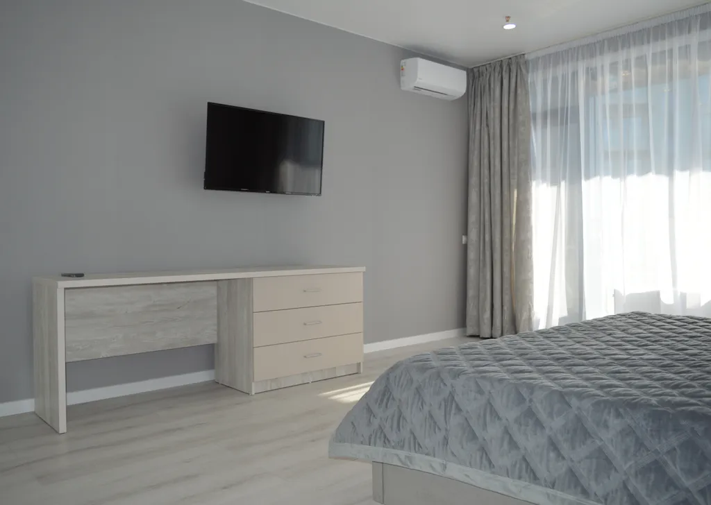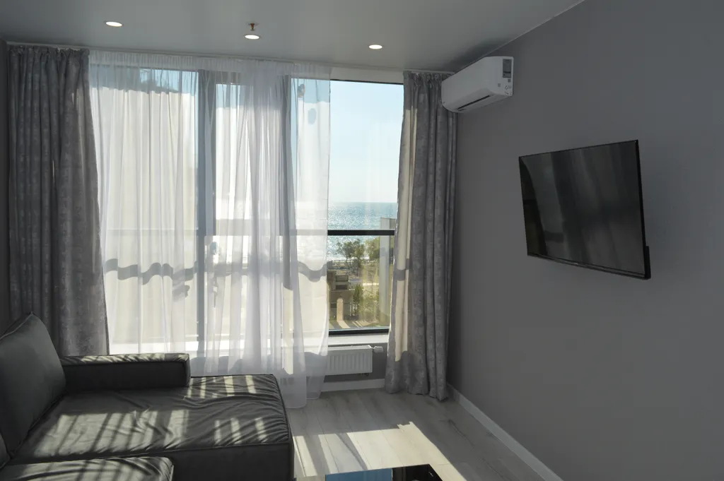 Удобства: Моноблок. Кухня, электропанель, СВЧ, чайник, набор посуды, холодильник, кондиционер, телевизор, стиральная машинка, комплект гостевых принадлежностей (комплект банных и лицевых полотенец, туалетные принадлежности). Напольное покрытие плитка и ламинат. Балкон. Вид на море