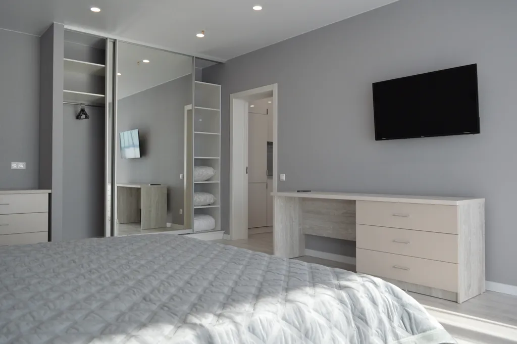 Мебель: двуспальная кровать, 2 дивана, стул со стульями, шкаф, вешалка в прихожей.