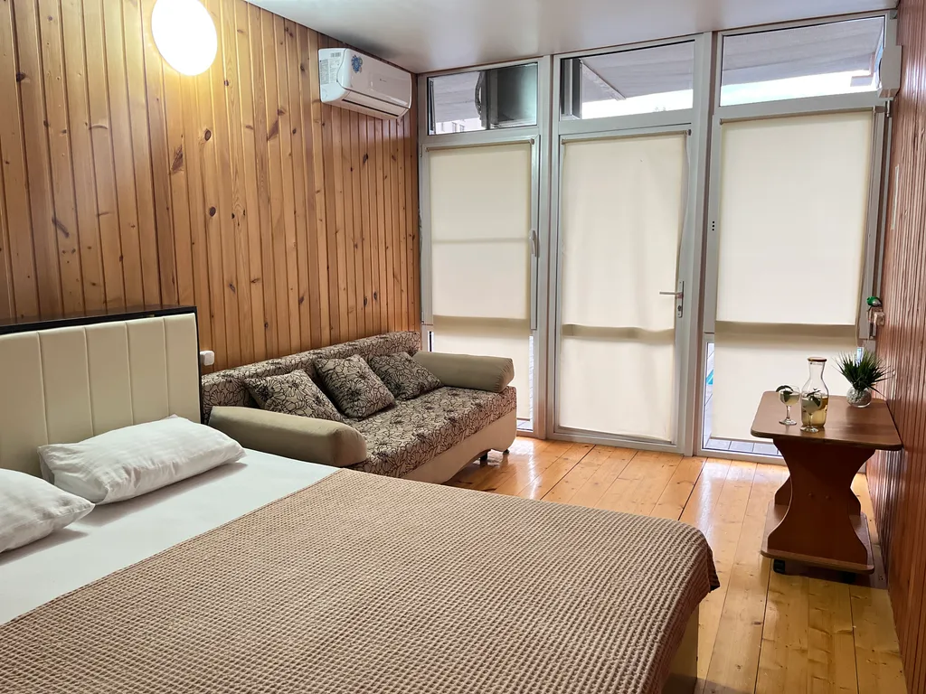 Эко номера из дерева. Одноэтажные, оборудованы всеми удобствами. Отдельный вход в каждый номер со двора.