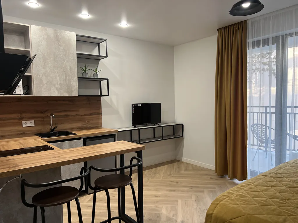 Кондиционер, собственная кухня с посудой, приборами и плитой, телевизор с IP-каналами, холодильник, микроволновка, стиральная машинка, чайник, утюг, спальные и гигиенические принадлежности, гигиенический душ. Огромная лоджия. Кровати можно разделить, диван полноценно раскладывается. Ремонт сделан из современных высококачественных гипоаллергенных материалов. Вид на внутренний двор и бассейн (не на плавни с лягушками и шумную трассу). Время заезда после 16:00, выезда до 10:00. Ранний заезд и поздний выезд по договоренности и за доп. плату. Цена динамическая, зависит от сезона и количества человек (указывайте полностью).