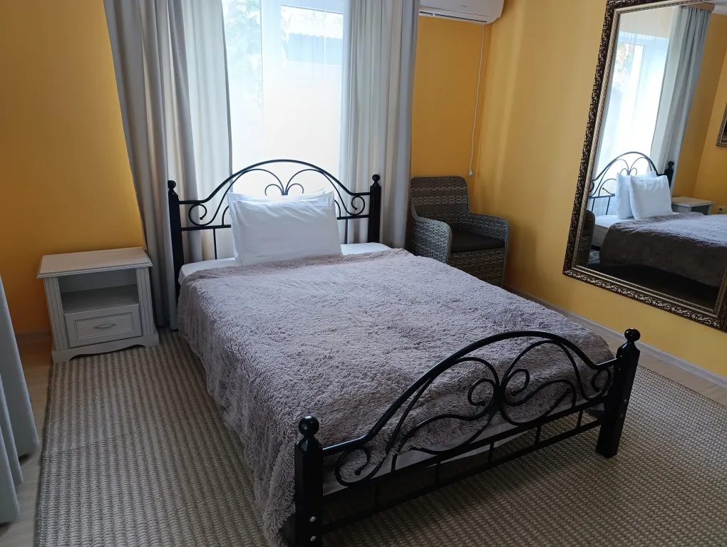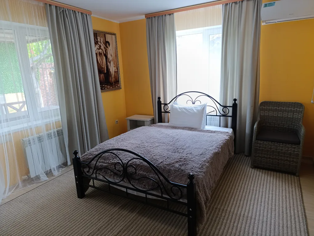 Сдается отдельно стоящий двухэтажный дом со своей мангальной зоной. В доме 3 спальни, в каждой из которых располагается двуспальная кровать, 2 санузла, кухня. Есть вся необходимая мебель и техника для комфортного отдыха. Предоставляем постельное бельё, полотенца, средства гигиены.