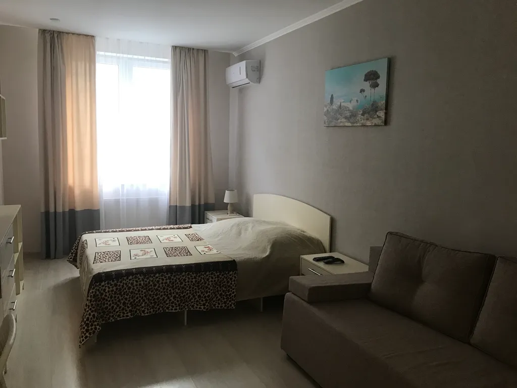Жилая комната: двуспальная кровать (ширина 160см), удобный раздвижной диван, набор мебели, компьютерный столик, телевизор, кондиционер.