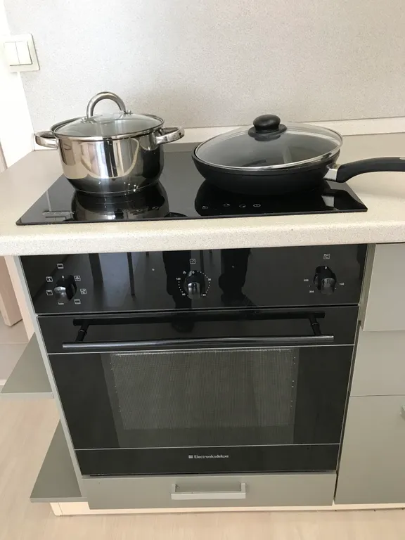 Кухня: современная кухонная мебель, наборы посуды, холодильник, индукционная плита, духовка, микроволновая печь, стиральная машина, кондиционер. Все это сделает приготовление пищи быстрым, приятным и не утомительным.