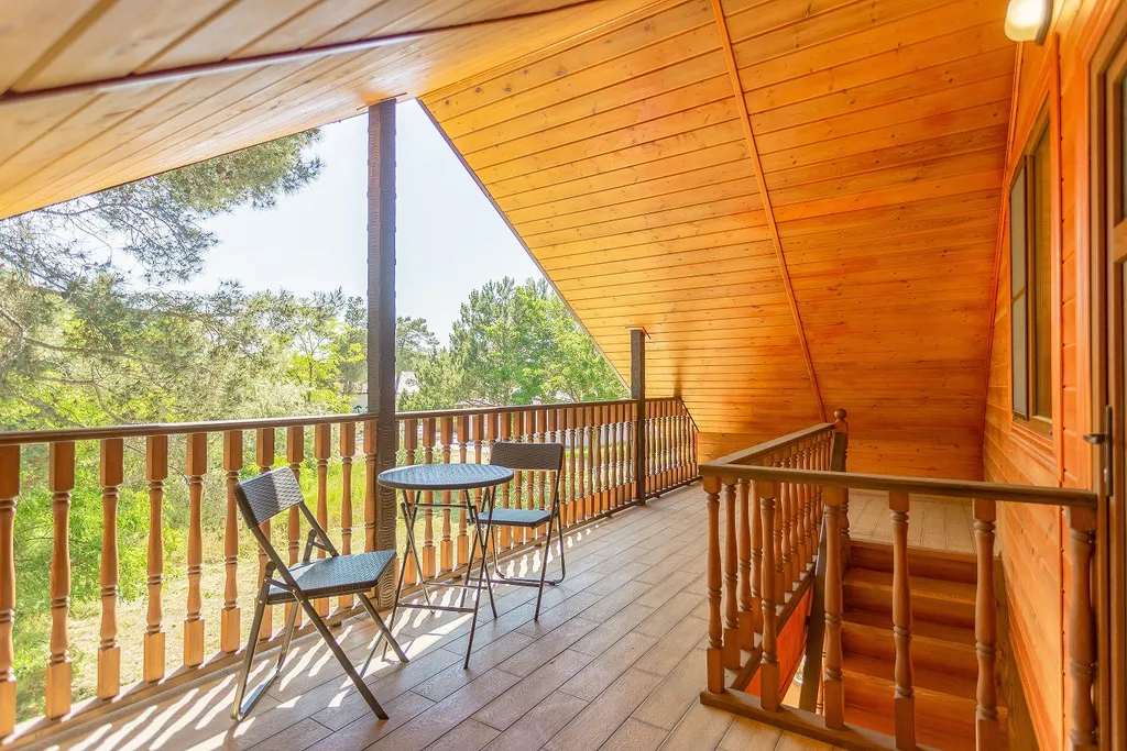 Номер состоит из двух этажей с меблированной террасой каждый.