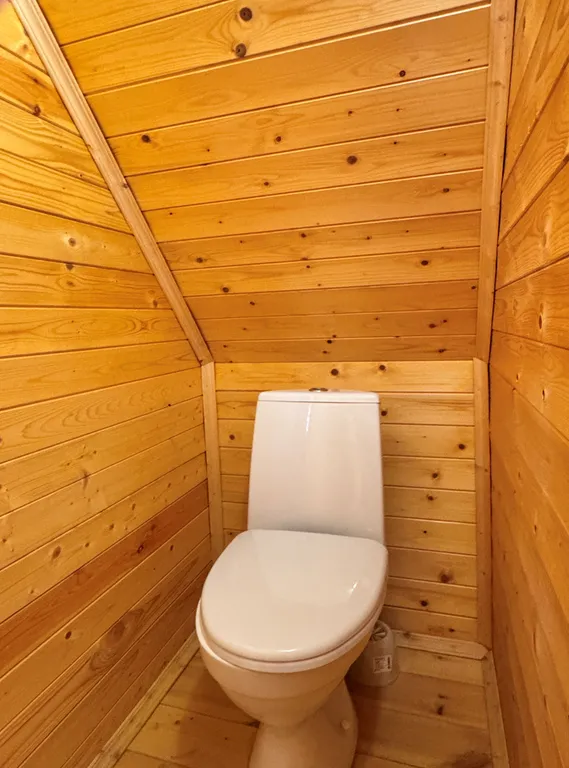 Второй этаж: 2-сп кровать, две 1-сп кровати, тумбочки, санузел.