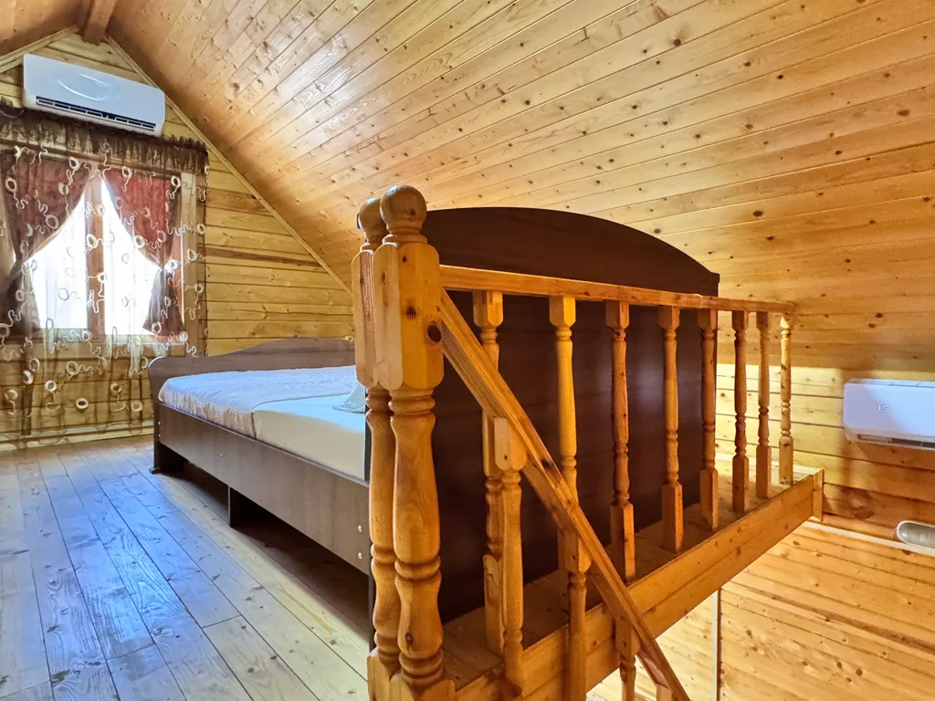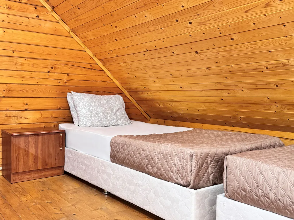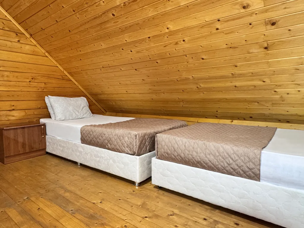 Второй этаж: 2-сп кровать или две 1-сп кровати, тумбочки.