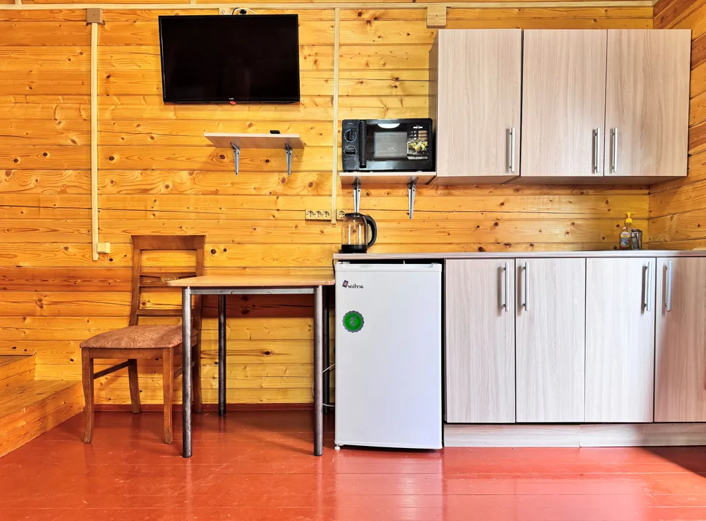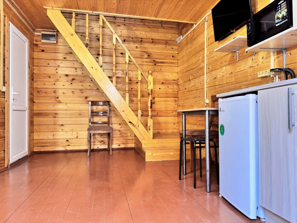 Первый этаж: 2-сп диван-кровать, кухня (посуда, эл.чайник, микроволновая печь, холодильник), ЖК-телевизор, сплит-система, санузел и душевая.