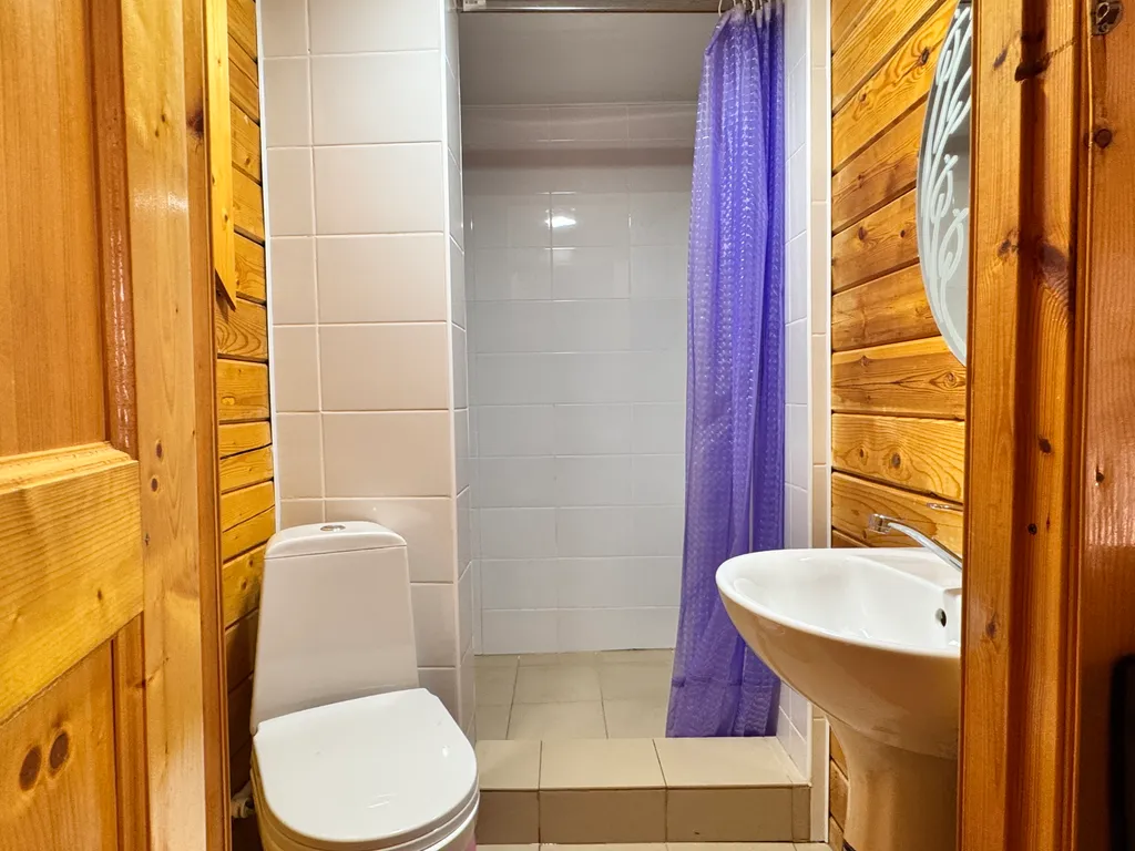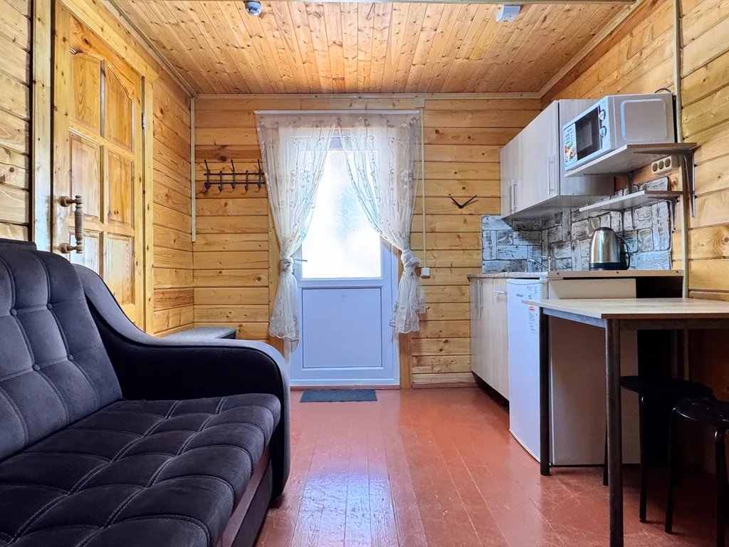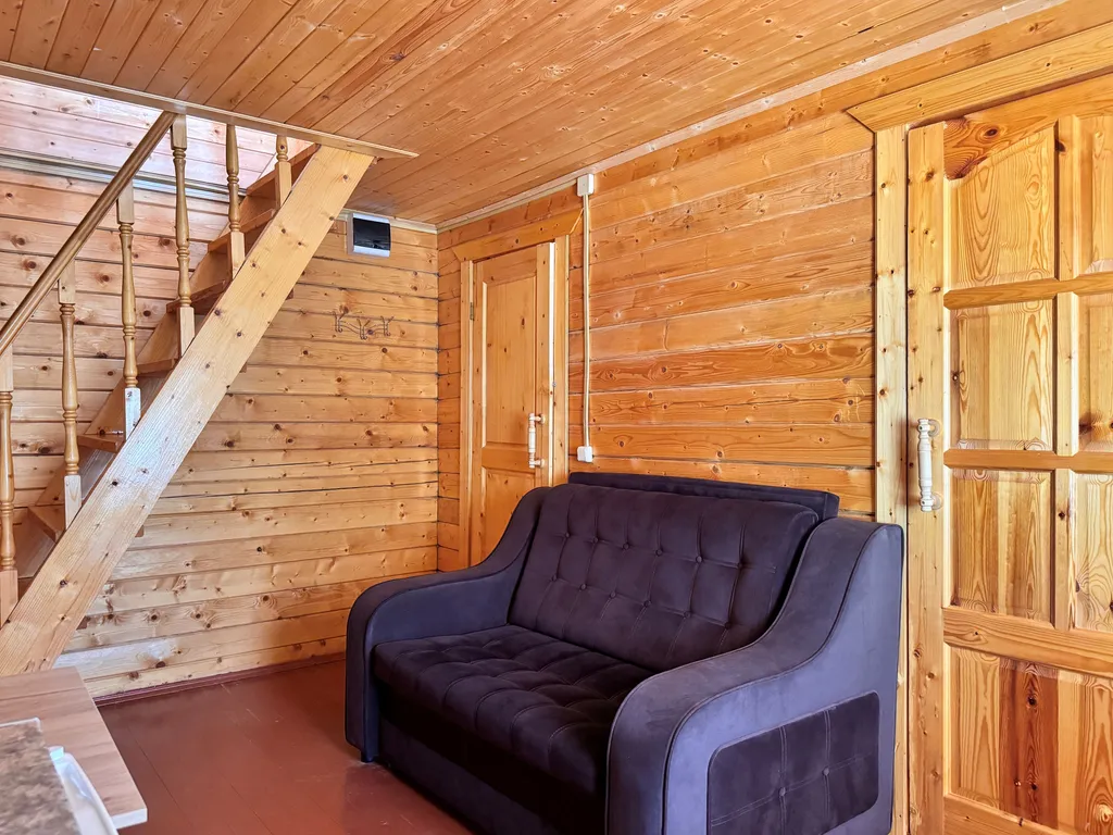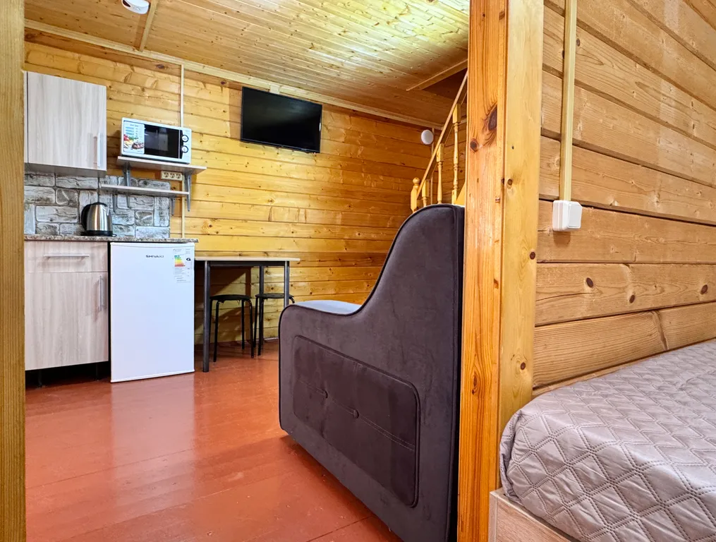 Первый этаж: 2-сп кровать, кухня (посуда, эл.чайник, микроволновая печь, холодильник), ЖК-телевизор, сплит-система, санузел и душевая.