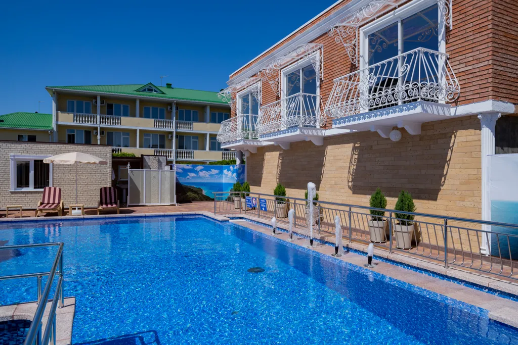 Главным преимуществом является наличие открытого подогреваемого бассейна с детской зоной. Территория вокруг оборудована теневыми зонтами и шезлонгами.