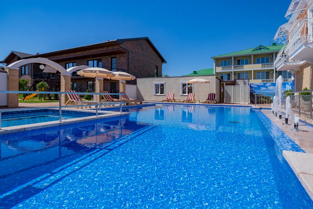 К услугам гостей открытый подогреваемый бассейн с подсветкой и фонтанами, также детский бассейн с гейзером и подсветкой. Территория вокруг бассейнов оборудована теневыми зонтами и шезлонгами.