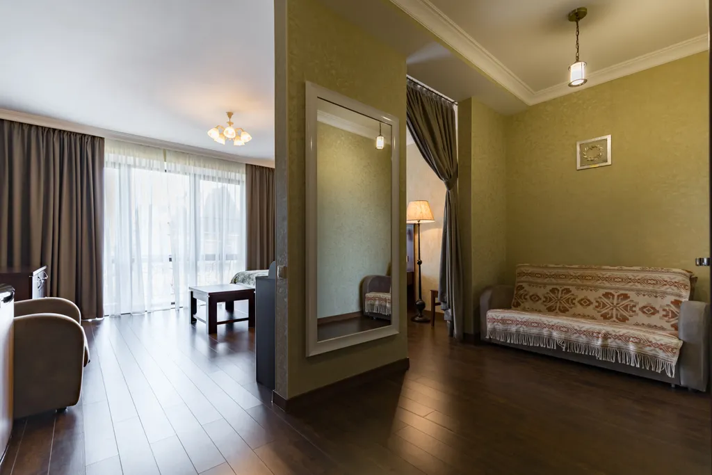 Комнаты оснащены качественной мебелью и всем необходимым для длительного комфортного проживания. В стоимость номера включен завтрак по системе «шведский стол».