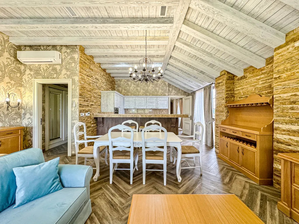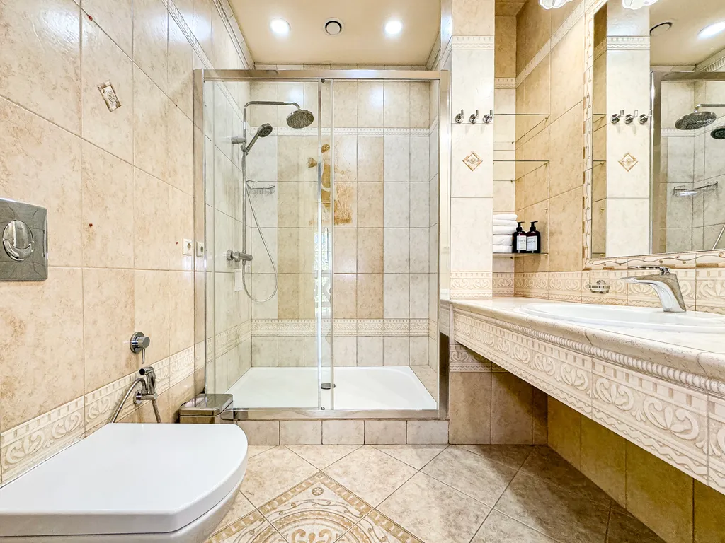 Гостей ждут современные удобства: две двуспальные кровати, диван, телевизор, сплит-система, бесплатный Wi-Fi и балкон с мебелью для отдыха. Ежедневная уборка, смена полотенец и постельного белья (1 раз в 3 дня) обеспечат безупречный сервис. В каждой ванной комнате вы найдёте фен, халаты, тапочки и туалетные принадлежности. Люкс — это сочетание роскоши, функциональности и домашнего уюта для вашего идеального отдыха.