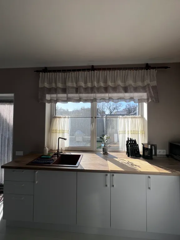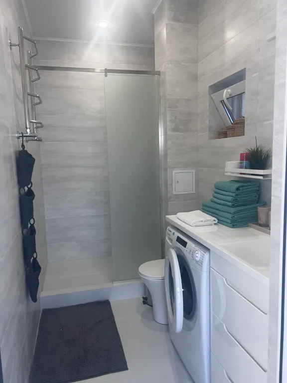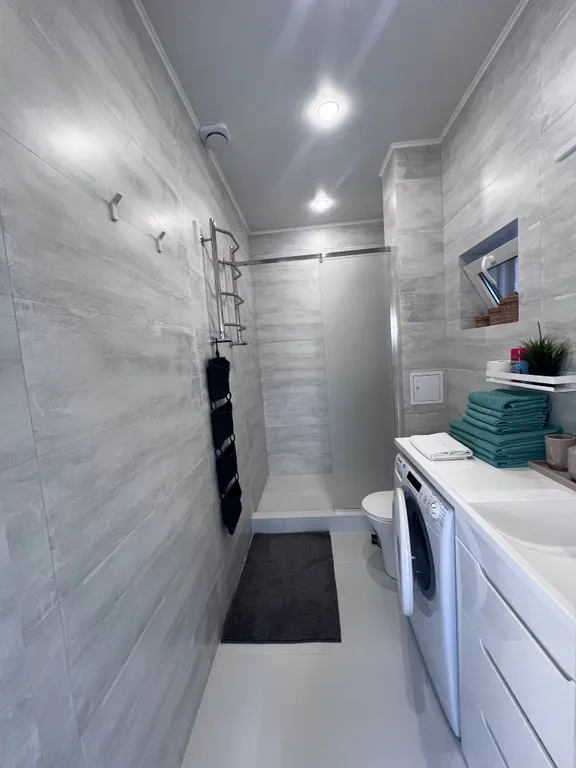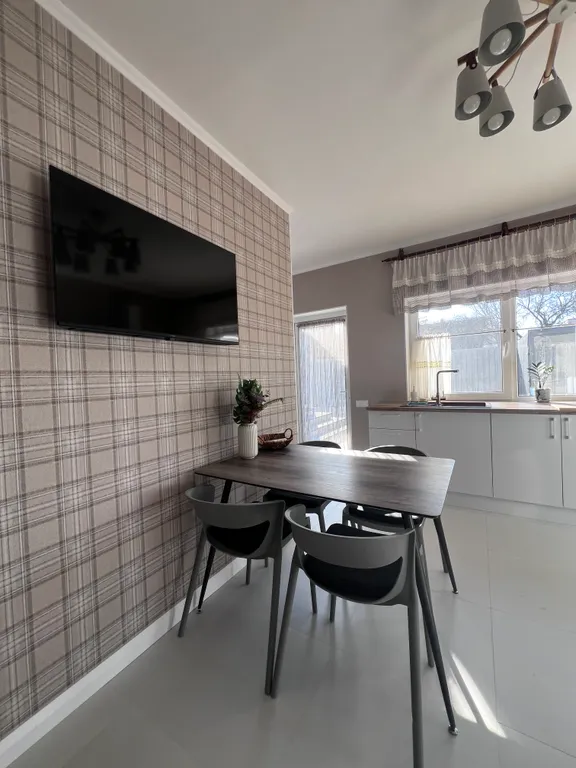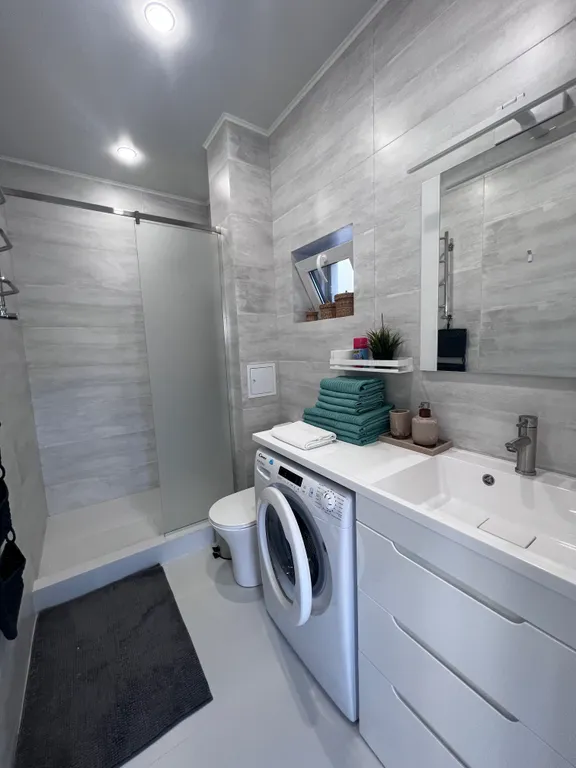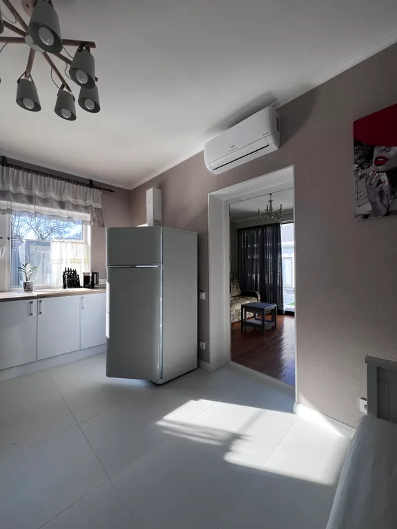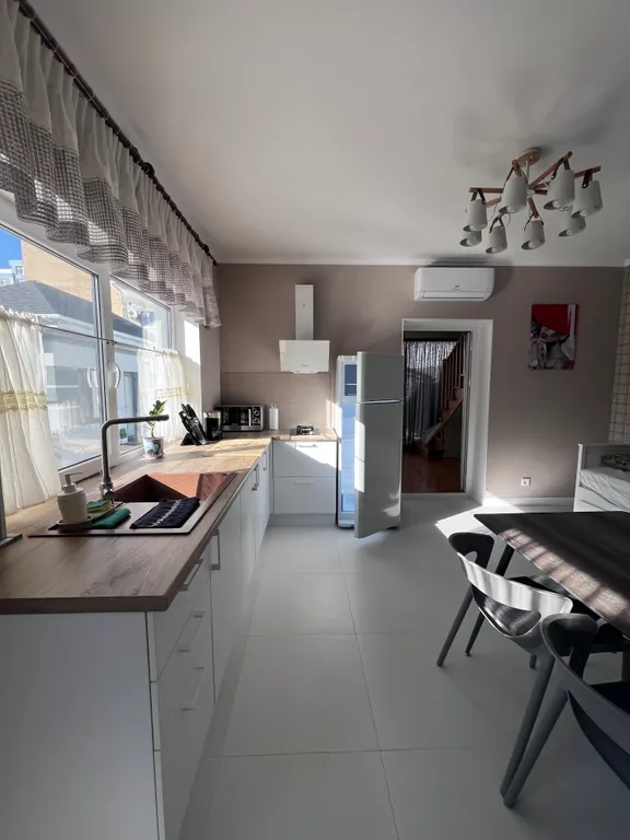 Оборудованная кухня: холодильник, микроволновка, посудомойка, тостер, кофеварка – всё, что нужно, чтобы вкусно кормить любимых.