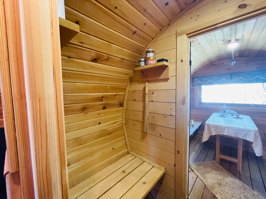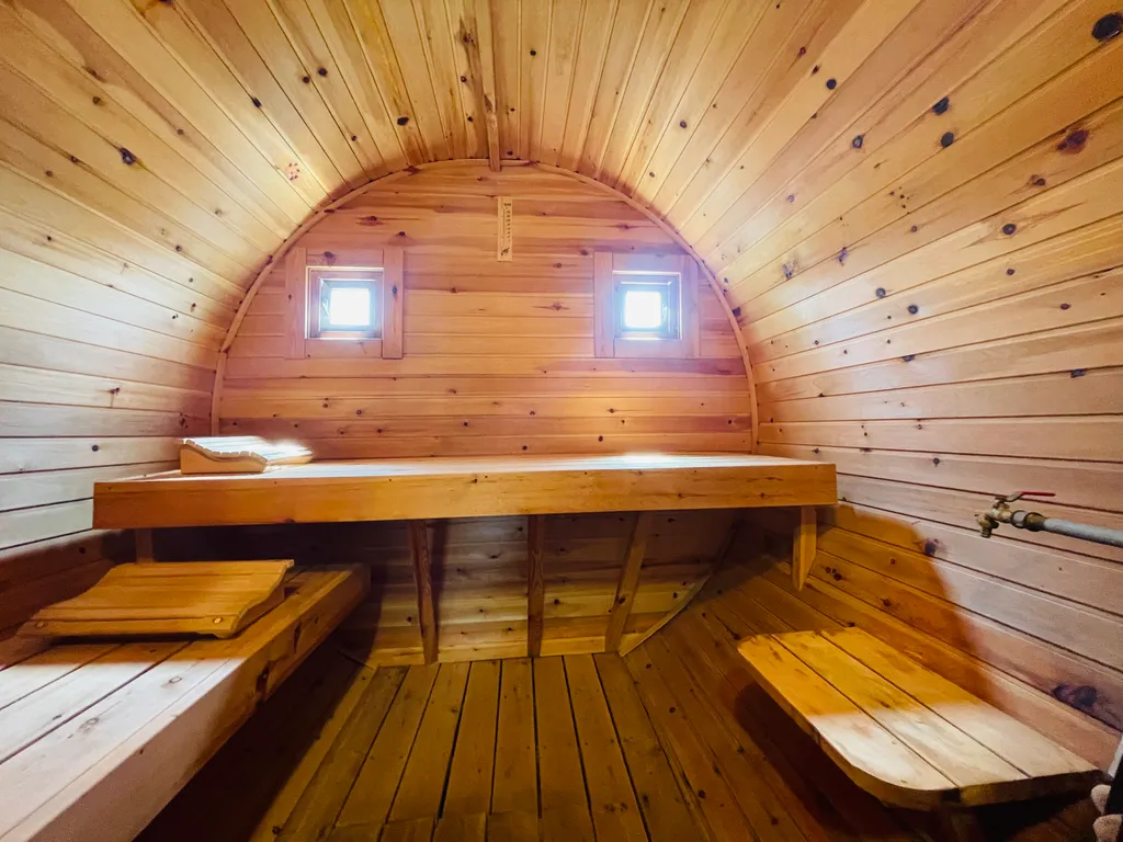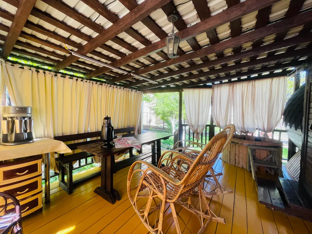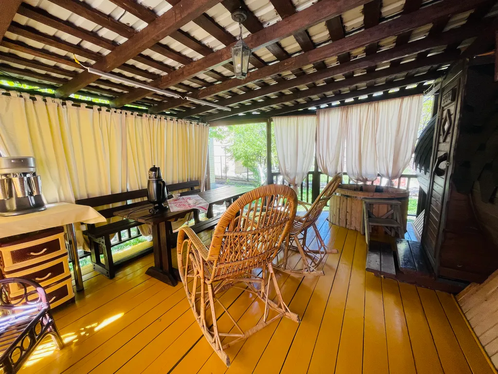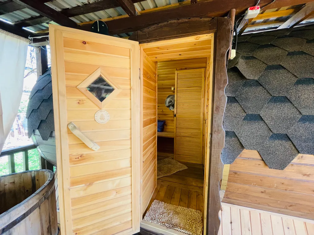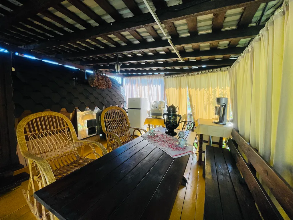 На придомовой территории расположен фруктовый сад, в котором имеется уютная беседка, мангал, холодильник, самовар и т. Д. Большая достопримечательность дома - отличная баня - сауна на дровах, из настоящего сибирского кедра. Какой там аромат!! После парной очень приятно окунуться в купель с ледяной водой, посидеть на уютной веранде в кругу друзей и близких, полюбоваться закатами и насладиться тишиной и спокойствием. Все это дает возможность вырваться из городской суеты и поймать свой дзен. Следует отметить, что «одна баня» входит в стоимость проживания, все последующие - за дополнительную плату.