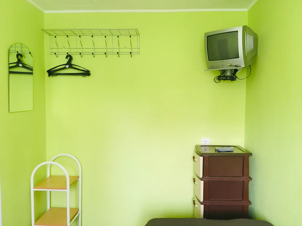 6 кроватей на металлокаркасе (90 см ширина), тумбочки прикроватные, вешалки для одежды, зеркала настенные, телевизоры, комоды.